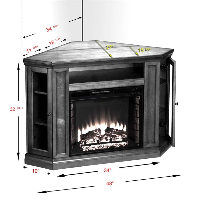 We have a great selection by finish, length, and price. Along with this, as it is possible to let the flames operate individually, one can this corner fireplace tv stand is manufactured by a reliable company and the users can buy it with full confidence. This fireplace has an open media cabinet at the top of the unit with cabinets on either side in which you can showcase your belongings through glass doors. Southern enterprises corner electric fireplace tv stand 60 inch. This corner electric fireplace with a tv stand constitutes a perfect proposition for one's classic and classy interiors.